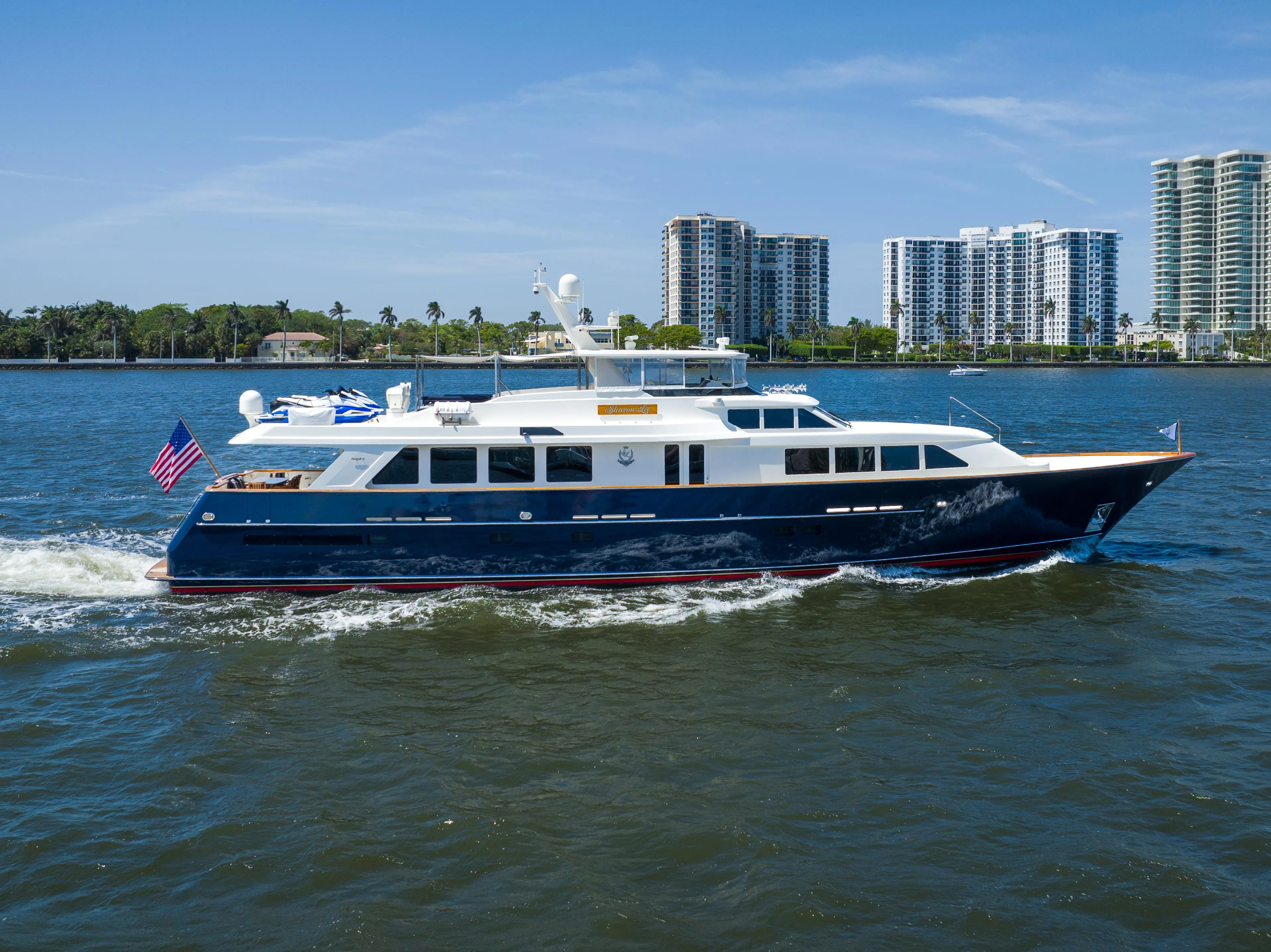 SHARON LEE has been expertly owned, maintained, and extensively refit by an experienced yachting family since taking ownership in 2019, bringing her into modern times but at the same time maintaining her high-quality build and classic and traditional styling. She was the first Burger built with raised panels throughout, featuring African mahogany with raised panels of African Fiddleback mahogany. With four guest staterooms on the lower deck for up to 8 guests and crew accommodations for up to 4 in the bow, SHARON LEE offers elegant and comfortable accommodations for all. Additional features include a brand-new paint job with flag blue hull, walk around decks, CAT main engines, Atlas shore power converter, a custom-built hardtop, hydraulic, telescoping Nautical Structure passerelle, Nautical Structures 4,000 lb davit, Koopnautic Sea Rocq stabilizers, a stunning and spacious country-style galley, 8,600 US Gallons of fuel, and a spacious 22’11” beam.