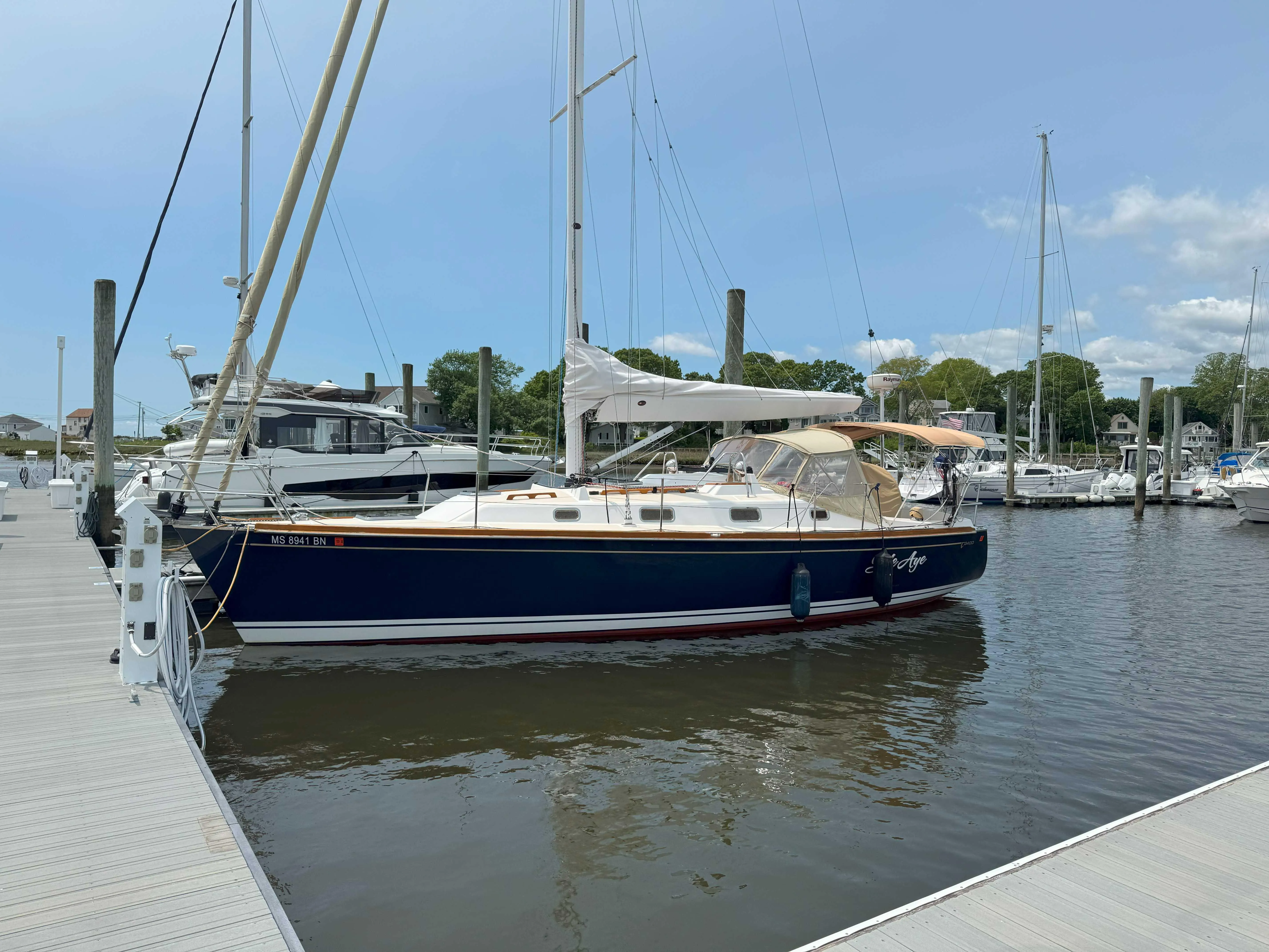 Side Aye is a two owner very well-kept example of the Tartan 3400. She was built in 2009 but not commissioned until 2013 due to the financial crisis. She was a freshwater boat until 2018 at which time she was purchased by her current owner. She features gleaming dark blue topsides and a cream-colored deck, coach roof and cockpit. She is easily single/shorthanded with all halyards and control lines led aft to the cockpit. Her Harken electric winch and auto pilot further aid in single/short handing. Her solid cherry joinery with teak and holly sole gives Side Aye a comfortable and warm feel. Her nine opening ports and two ventilation hatches provide great ventilation while at anchor or at the dock. Her generous sized cockpit featuring dark blue cushions with white piping make for a comfortable experience while under sail or at the mooring. She is turnkey and ready for her next adventure.