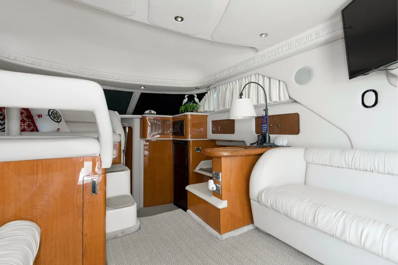 2000 40’ Sea Ray 400 Sedan Bridge “Silver Lining” – A stunning blend of luxury, comfort, and performance! This exceptionally clean yacht boasts a spacious flybridge with Radar Arch and Bimini, two staterooms, two heads, and sleeping accommodations for six. Powered by twin Caterpillar 3116 diesel engines (350 HP each), she delivers reliable cruising with a 350-gallon fuel capacity and 120-gallon water capacity. Recent upgrades include state-of-the-art electronics, refreshed upholstery, new bottom paint, and numerous enhancements from 2022–2025. With a modified V-hull, fiberglass construction, and elegant white finish, “Silver Lining” is ready for your next adventure. One of the cleanest Sea Ray 400 Sedan Bridges on the market—don’t miss this opportunity!