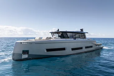 At 75 feet, SIMON sets a new benchmark for indoor-outdoor living, blending Italian elegance with performance and versatility. Featuring a rare four-cabin layout—uncommon for yachts in her class—she offers exceptional comfort and flexibility for extended cruising.
