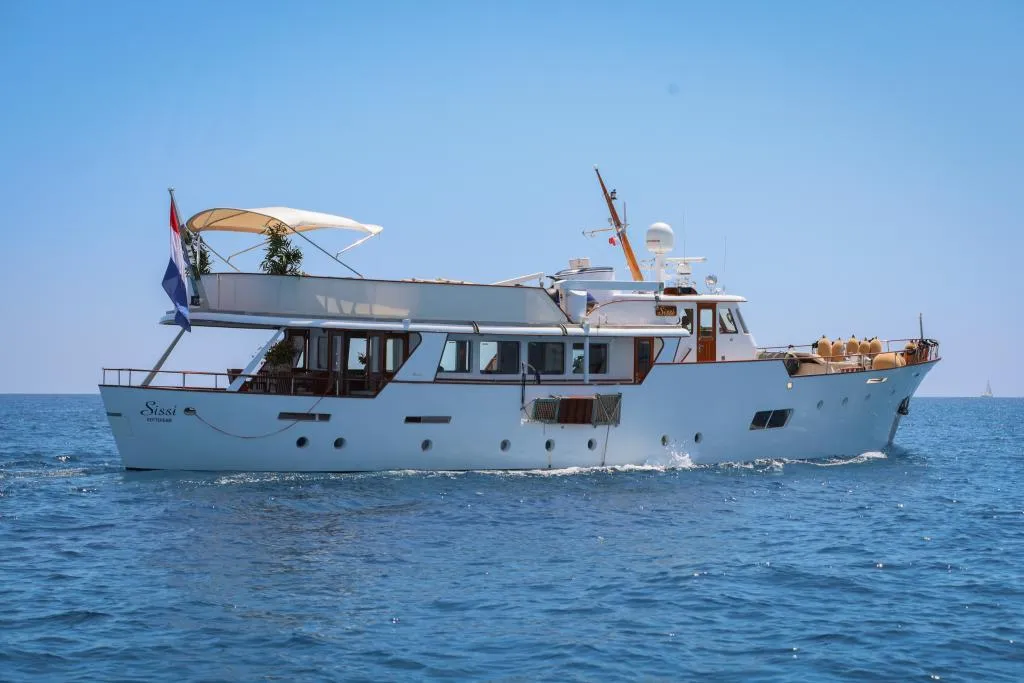 The 26.75m classic canoe stern motor yacht named Sissi was built in 1963 by the renowned Dutch yard Feadship. Designed by De Voogt, the yacht was constructed using a combination of steel and aluminium