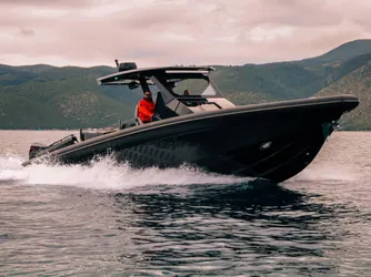 At over 40 feet long with an 11-foot beam, it's spacious, sleek, and ready for anything. The fiberglass hard top offers shade when you need it, while integrated LED lighting — on deck, underwater, and throughout the cockpit — sets the perfect tone for day or night cruising.