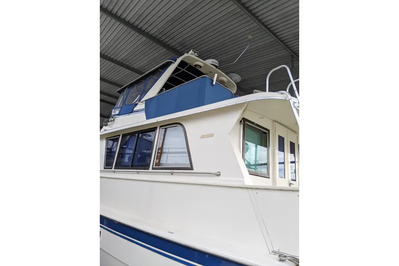 The 3 stateroom, 3 head layout features full beam salon, gally down, and a truly functional and appealing bridge with the best seating areas for your cruising comfort and safety.  Dependable Detroit diesel power with extensive detailed service and maintenance records.