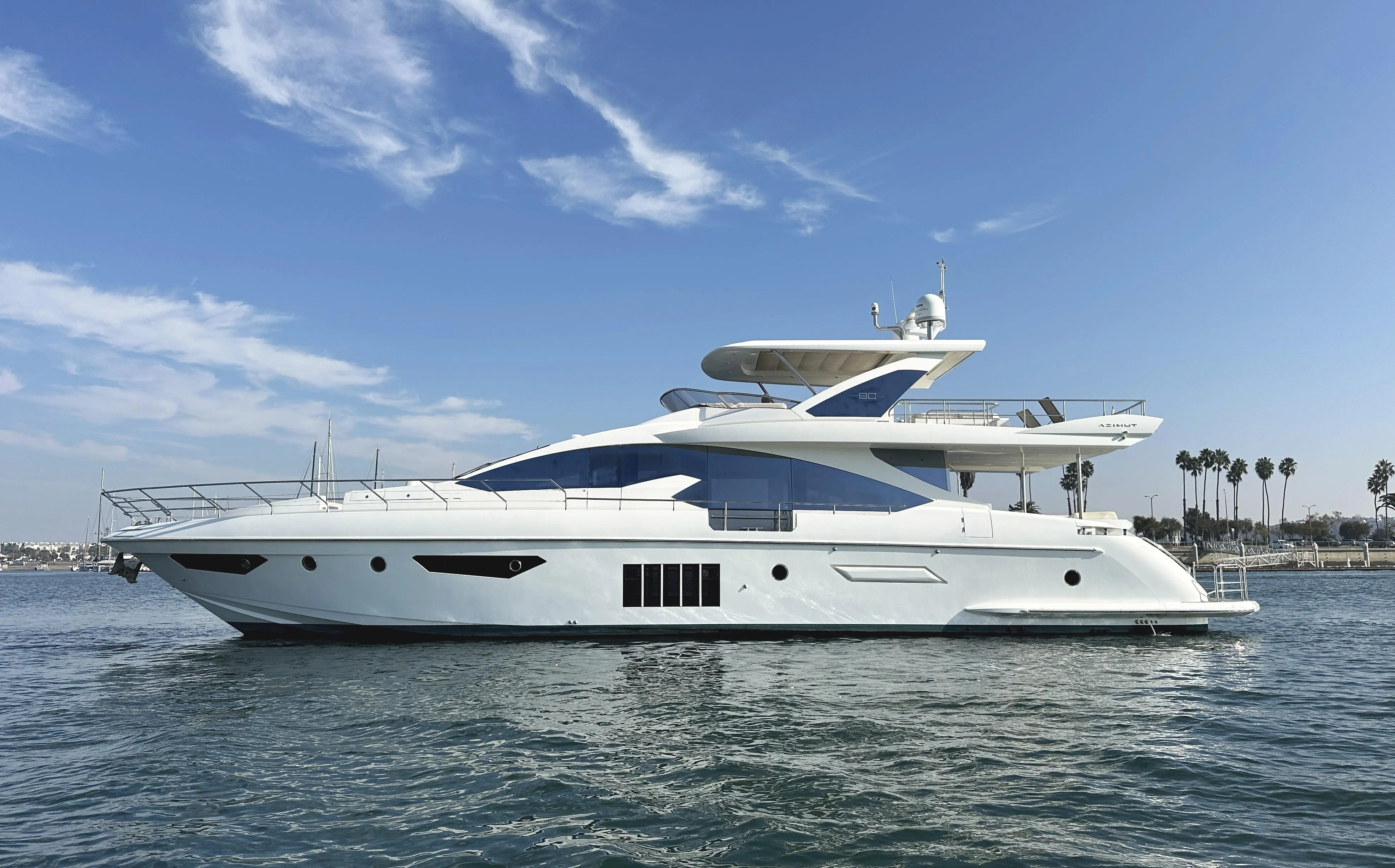 ONLY TWO OWNERS & NEVER BEEN CHARTERED, this 80' Azimut Flybridge 2015 (LOA 82') has been very well maintained by an experienced and knowledgeable yachtsman, you will be overwhelmed by the attention to detail & the numerous upgrades that have been made to this vessel.