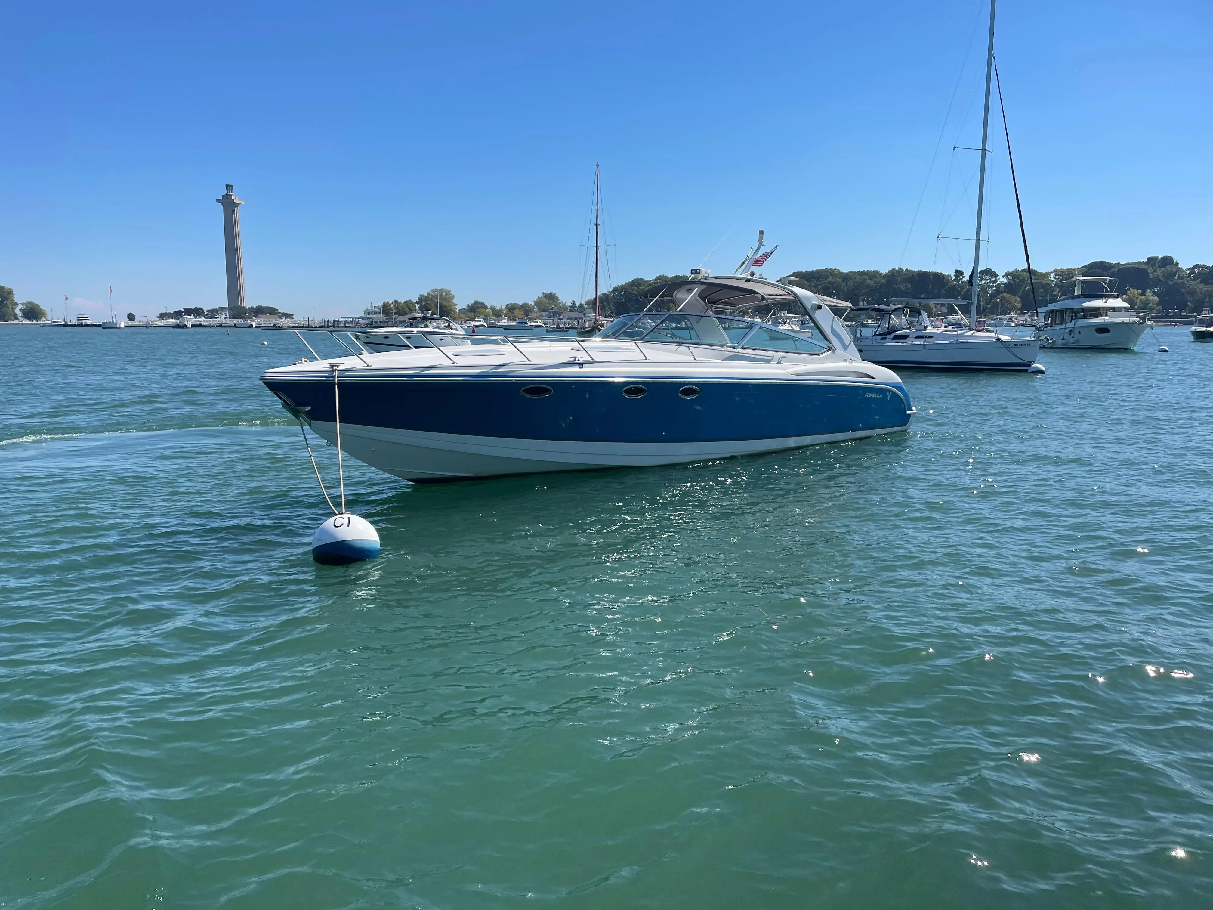 This well cared for Formula 400SS is ready for the next owner.  Only 492 hours on the upgraded Mercruiser 496HO 425 hp motors with X drives.  Professionally serviced with very reputable Mercury dealer. Service history details coming soon with details on the excellent service done on this boat since its been in Ohio since 2021.  Previously the boat was lift kept in Florida.  Exhaust risers and manifold were done.  This is a closed cooled engine with water cooling the exhaust online. Boats has a blue wrap on the hull and is whit under the wrap.  Boat, motors and drives are in excellent condition.   There's something about a Formula that exudes quality, from the choice of materials, colours, and fabrics to the fit and finishing details. The 400 SS (Super Sport) exemplifies this. Look in every nook and cranny and behind every opening and fixture and you can see that quality is built-in, not just added on.    The 400 SS is a big, commodious, accommodating, entertaining-friendly boat yet sporty in appearance and handling. A pneumatic-assist transom door leads from the integrated swim platform past the convertible sunlounge with massive storage below to the one-level cockpit. A U-shaped convertible lounge with dual-height cockpit tables and filler cushions plus a port lounge, provide seating along with the two dual-position helm seats. A molded wetbar with pullout, stainless steel-fronted refrigerator, beverage racks, and two portable coolers offers ample refreshment opportunities. The hardtop is optional, but full canvas is standard.