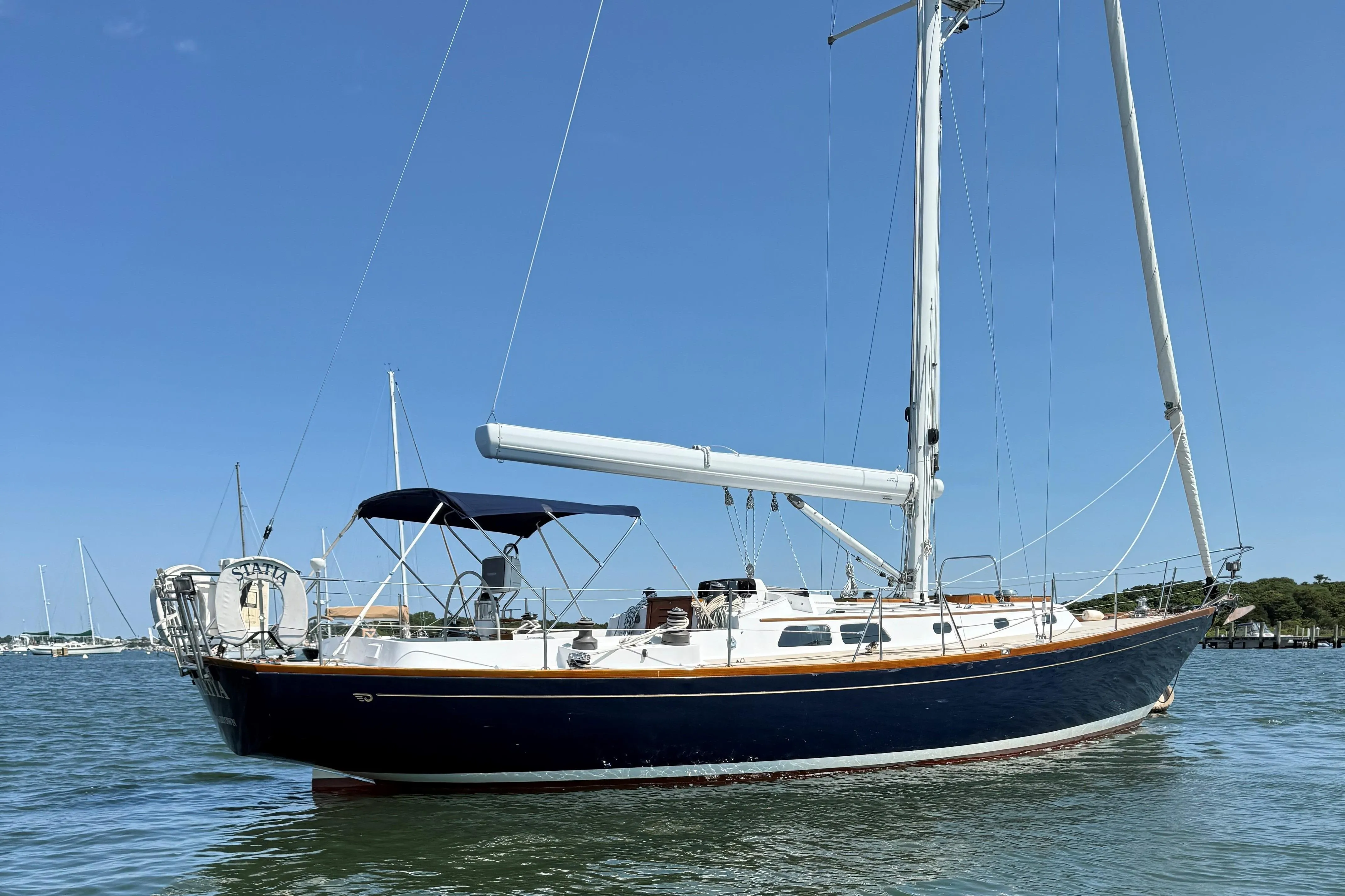 STATIA is a late model Sou’wester 42 and has been well maintained and updated. A special offering, STATIA is set up for shorthanded performance sailing with a Hall carbon fibre rig, Leisurefurl boom and four power winches.