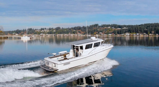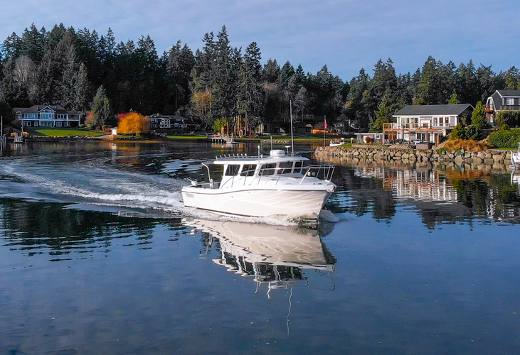 The Ocean Sport Roamer 33 has earned a cult following in the Pacific Northwest for its rugged construction, offshore capability, and smart use of space — and this particular Roamer stands in a class of its own. Extensively upgraded in 2023, she now boasts brand new twin Volvo D4 320 common rail diesels, new-generation DPI outdrives, a full Garmin electronics suite, and a gyroscopic Seakeeper stabilization system. The result is a Roamer that runs smoother, faster, quieter, and more confidently than anything else in her class. This boat was also manufactured during the Ocean Sport era where the hulls were created using Lindell’s superior vacuum-infusion method resulting in a stronger hull that’s 1,500lbs less than the current Ocean Sports built by Nordic Tugs.