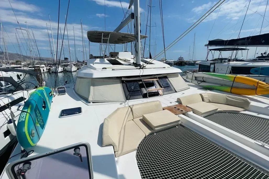 Moreover, Nautitech 46 caters to your needs with its available amenities, including 4 shower and 4 toilet, ensuring your comfort throughout the journey. Equipped with a half batten genoa and boasting a draught of 1.45 m, she navigates various waters with ease. Featuring a water tank capacity of 600 l, STEFANY guarantees a sufficient water supply for extended voyages. Steering is achieved effortlessly with Other steering wheels, providing precise control. Powered by a robust 50 hp engine, STEFANY promises a reliable and enjoyable sailing experience.