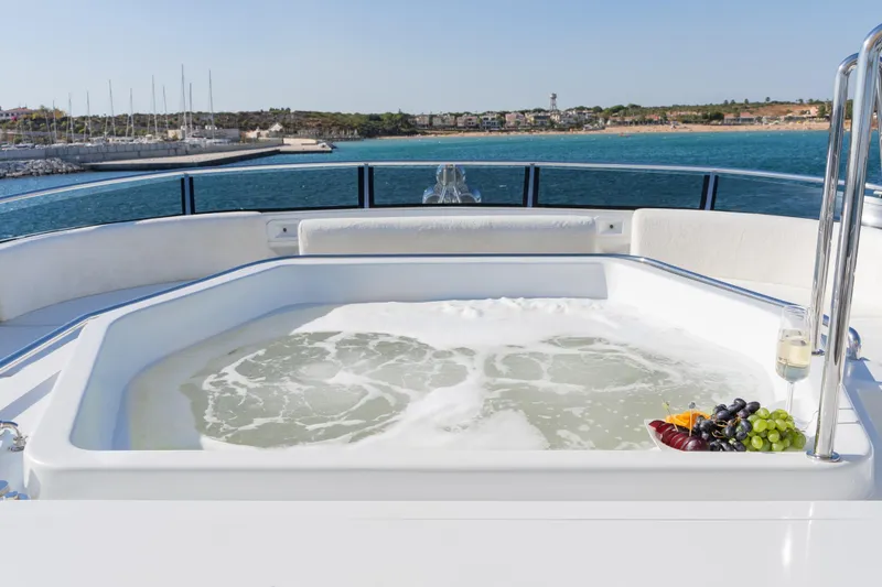 One of the most significant upgrades is the addition of a large hydraulic swim platform, offering easy access to the water and the ability to carry a tender or jet ski. The yacht also features an Opacmare hydraulic gangway, upgraded windlasses, renewed bow thruster system and extensive hydraulic hose replacement completed in 2022.