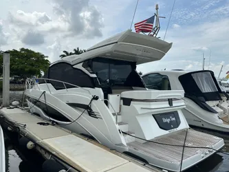 Having two complete staterooms with 2 separate heads in a sub 45' boat will surely impress all. Having a full amidship owner's cabin provides not only ample storage with finish closets and solid doors, it occupies the whole width of the yacht giving the owner a private area with full length windows on port and starboard side for natural light. The Galeon fit and finish is one of a kind with thought of functionality and detail throughout. This lightly used Galeon is powered by twin Volvo Penta IPS D6 engines each with 325hours, which provides a cruise speed of 25KNTS and a top speed of approx. 32KNTS. This sport cruiser is the perfect vessel to either relax and enjoy the views from any location while slipped or to enjoy cruising the waters with a comfortable and luxurious ride while providing the power to reach your destination with impressive timing. For more information, please reach out we take trade-ins cars or boats and can also help you with financing.