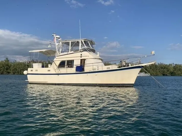 Still the One is a 1980 Hatteras 42 LRC that offers a 2 stateroom, 2 head layout, 8 KW generator, Highfield tender & aft deck Bimini top. Her naturally aspirated Detroit Diesel 4-53 engines provides a proven & efficient power plant & makes this boat an affordable & comfortable Great Loop yacht.