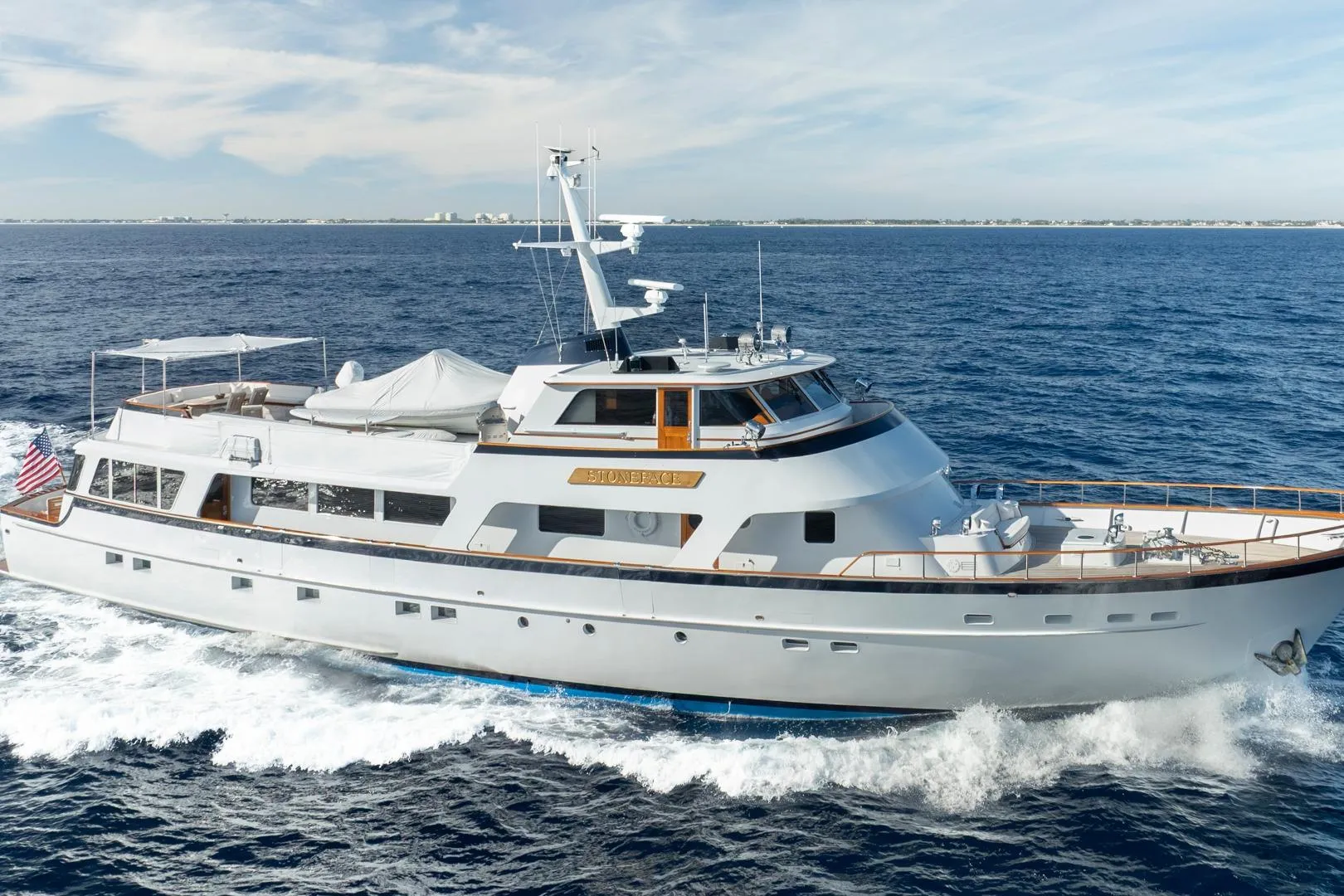 STONEFACE is a 106' (32.3m) custom aluminum motor yacht built by Burger Boat Company in 1978 and designed by Jack Hargrave. Presented in turnkey condition following an extensive 2011–2012 refit at Front Street Shipyard, she combines the timeless pedigree of a classic American yacht with the reliability and comfort of modern systems. STONEFACE is a true collector’s piece—an elegant, meticulously maintained example of Burger’s enduring craftsmanship.