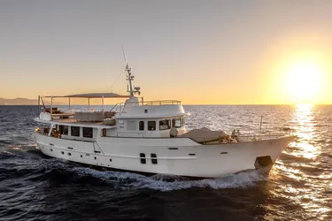 Welded steel hull and superstructure. The wheelhouse roof, mast, funnel and upper sun deck is aluminium and composite. Main and upper decks are teak laid over steel with epoxy treated plywood under, with all new teak on the sundeck in 2025. A full repaint was completed in 2023.