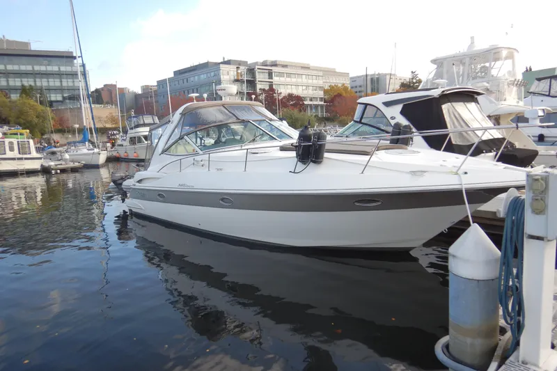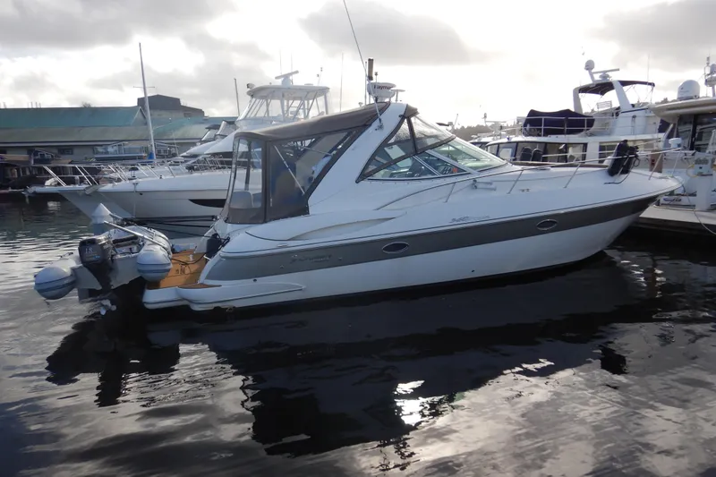 Introducing the 2007 Cruisers 340 Express, a stunning express cruiser that combines elegance and performance. Sunny Daze is designed for both comfort and adventure on the water. The modified Vee hull, ensures a smooth ride while navigating various conditions. Powered by twin Mercruiser 8.1S Horizon engines, each delivering an impressive 370 horsepower, the 340 Express achieves a cruising speed of 25 knots and a maximum hull speed of 30 knots, making it perfect for exhilarating outings. With a range of 230 miles, you can explore further with confidence. This boat features two cozy cabins and one head, providing ample space for relaxation. The electric windlass adds convenience for anchoring, a NEW inflatable rib with 18hp allows exploring ashore. Experience the joy of boating with Sunny Daze, where every journey becomes a memorable adventure.
