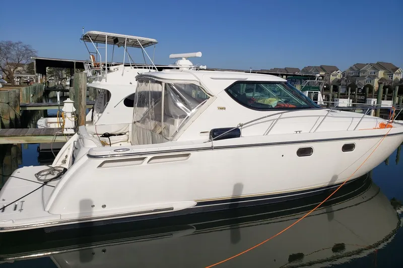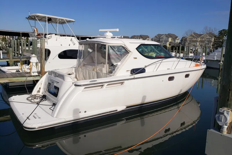 Fantastic value on this IPS 600 Volvo Diesel Pod Tiara Sovran 4300. Built for IPS drives, the Sovran offers a true 2 stateroom, 2 head layout, and all the teak interior that tells you it's a Tiara, great cockpit layout with ample seating areas, cockpit AC/Heat, wide beam side decks, and large swim platform. Tiara Quality, IPS Technology!!