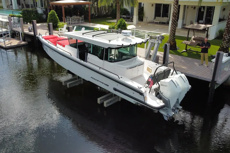 “The ultimate cross-over between open and enclosed boating, that challenges convention in both looks and onboard functionality. This model combines the functionality, ease of movement, social outdoor and indoor spaces and versatility of outboard walkaround with a spacious, fully enclosed weather-proofed cabin. The 37 XC opens a world of possibilities for safe, extended voyages in comfort even in unpredictable weather.” ~ Axopar