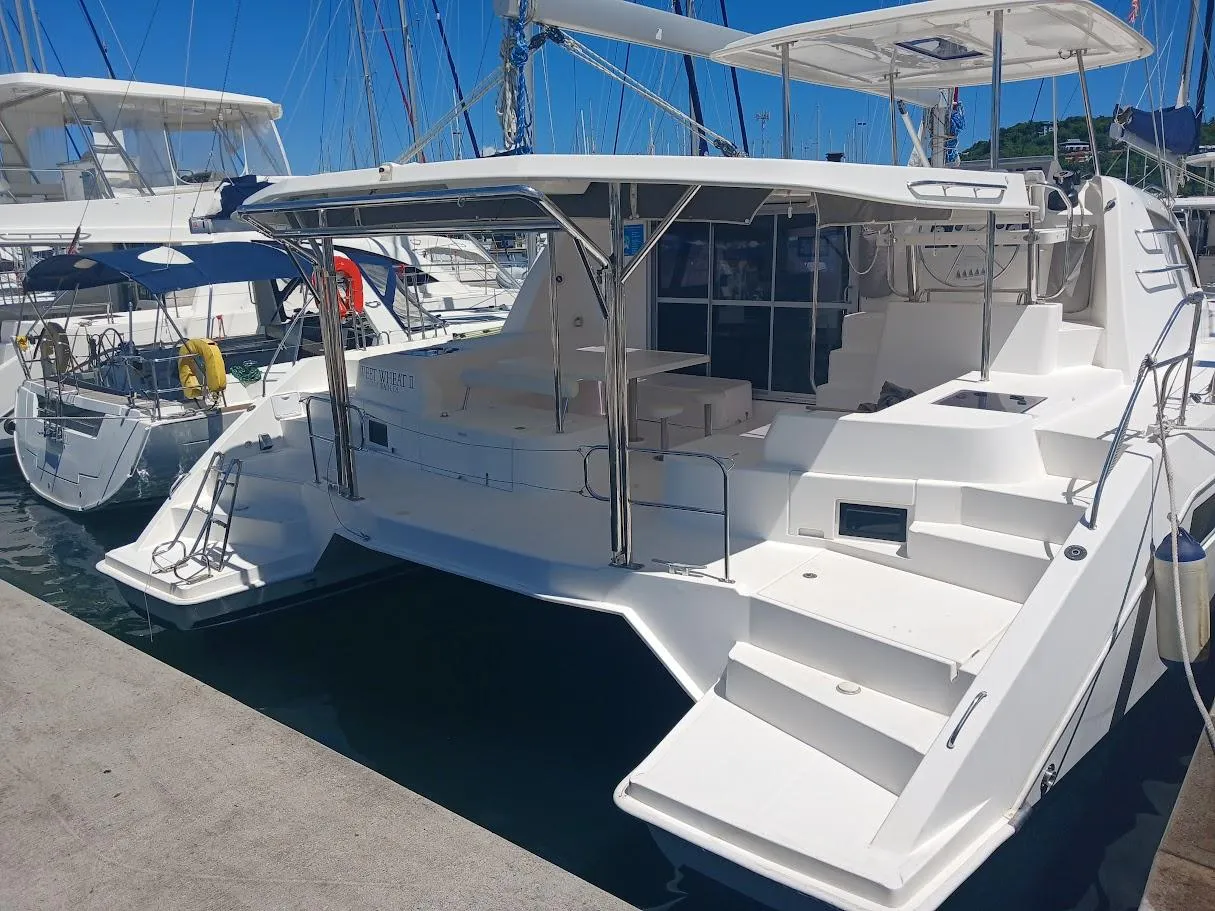 BROKERS REMARKS: Sweet Wheat II is a hurricane free L48 that has spent its entire life cruising between St Lucia and Grenada.   Being a 2018 that is one youngest Leopard 48's that Robertson and Caine built, and so is the final spec from the factory.  Like all of this model, it has the fwd cockpit, generator, air, con, electric dinghy lift, etc plus the light grey interior. Currently located in St Lucia and due to start refit early next year, so be sailed away late March 2024. NEW PRICE DROP!!  now asking only $435k, which is best value 48 we have by far!  Please updated pics taken and labelled Oct 2024, posted after the layout diagram.