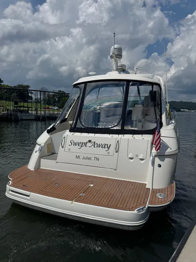 This is a well kept undercover freshwater 420 Express with about 1100 hours on twin Volvo D6-435's Direct Drives (Shafts).  It is equipped with Generator; Air/Heat; Master with Queen Berth and Full Head; After Salon Sofa is Convertible to a Sleeper; Full Galley with lots of Storage; Hardtop with Full Enclosures for Heated and A/C'd Cockpit; Windlass; Bow Sunpads; Radar/Gps; VHF Radio; Bow Thruster; Auto Pilot; Remote Spotlight; Upgraded Fusion Stereo.