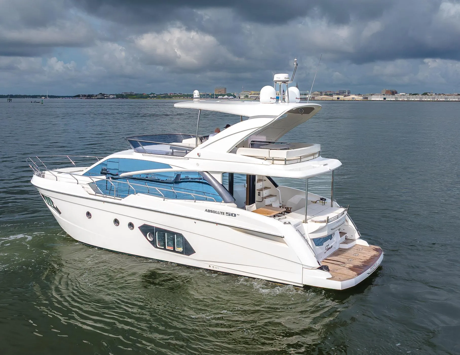 Modern Design: The Absolute 50 Fly features a sleek, contemporary design with elegant lines and a spacious flybridge, making it visually appealing.