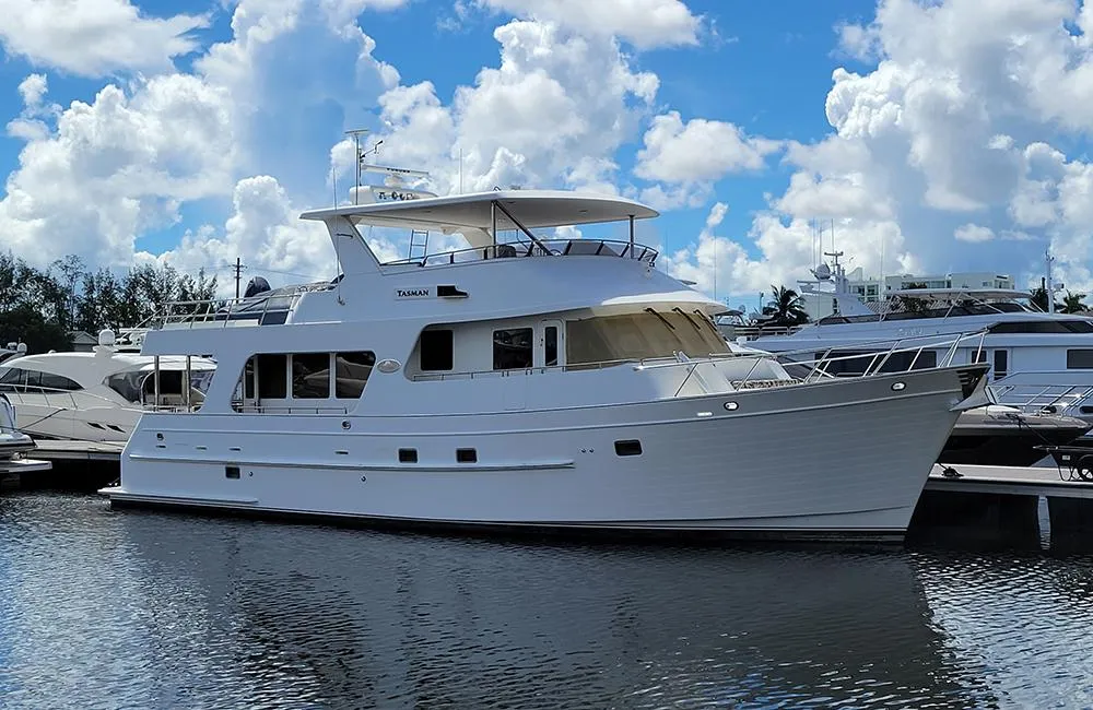 TASMAN was originally delivered to Seattle, WA, to a New Zealand client with over 50 years of cruising and sailing experience. His background included the ownership of a boat yard in New Zealand, where his team constructed an 86’ world cruising long-range vessel. After TASMAN changed ownership, she was kept in the northwest for a period of time by her second owners. TASMAN's current owners dedicated substantial funds to adding a Seakeeper system, extended freezer and refrigeration, a voltage and cycles converter, and additional systems and cabinetry changes from the original design. These owners have cruised TASMAN extensively, and even shipped the yacht to Europe and cruised there. The yacht spent the last year in Grenada, until her recent arrival in Fort Lauderdale - a 1,500 nautical mile voyage.