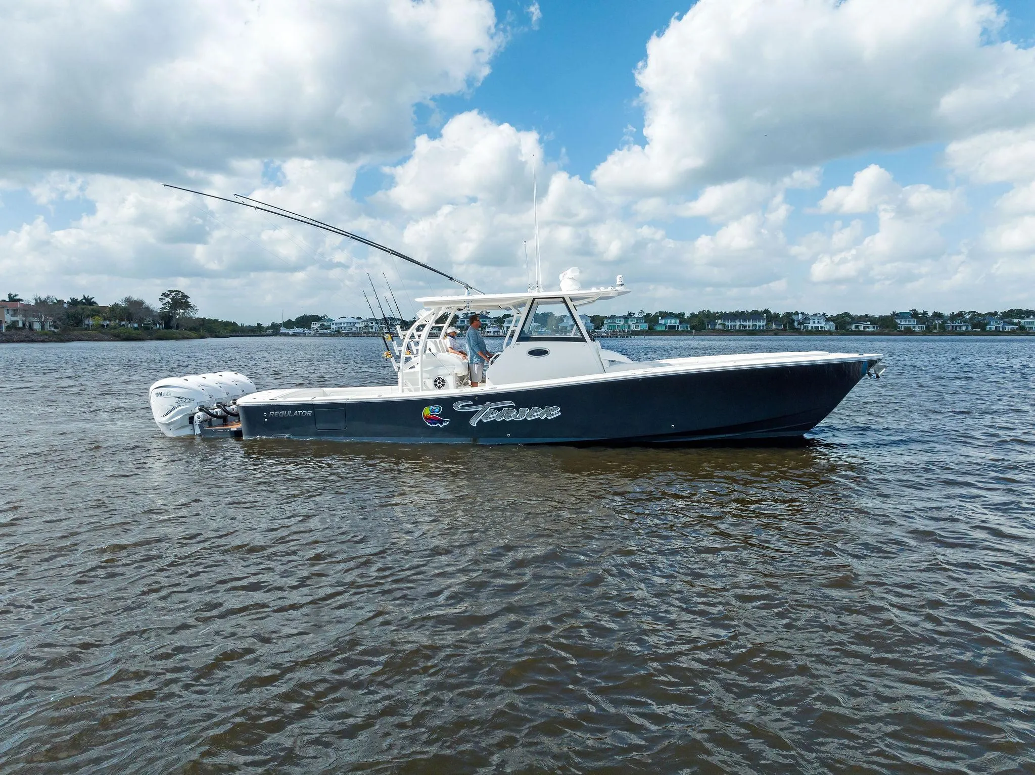 The Regulator 41, stands as the pinnacle of offshore performance, boasting quad Yamaha 425 engines and the cutting-edge Helm Master® EX system, supported by the Seakeeper® 5 stabilization system. This combination guarantees unmatched capability for all your offshore excursions.