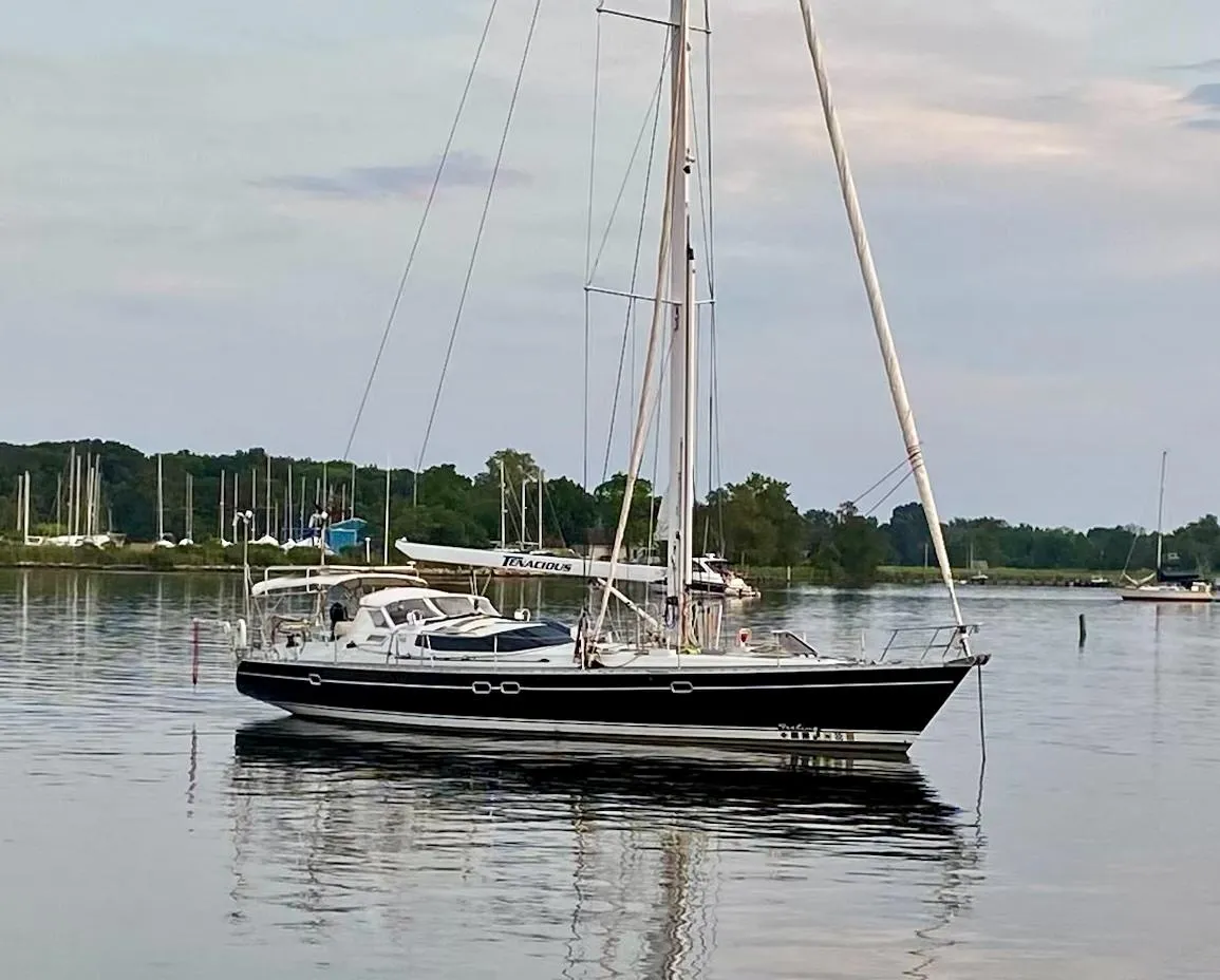 Our offering, TENACIOUS, was the last 546 built and was for the personal use of the owner of the Kirié Shipyard. Her current owner is her third. Under his care, he has invested significantly in upgrading her, as you will see in the listing details. At this point in his life, he is ready to move on to other things, so he has decided it is also time to part with the boat that has provided him with a home and safe passages for years.