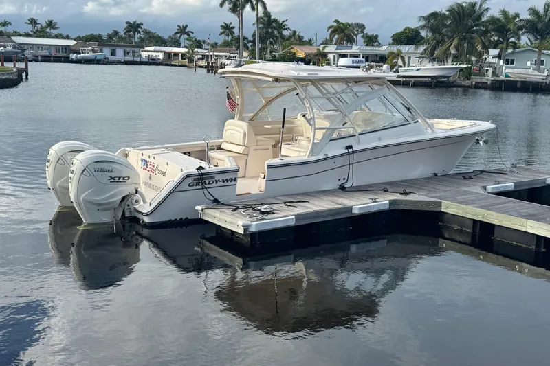 Thanks for viewing our 2024 Grady-White Freedom 335. This boat is in immaculate condition and was sold new by our marina. It is powered by twin Yamaha XF450NSA4 outboards with only 160 hours and transferrable warranty remaining until 04/01/2031. These motors feature Yamaha's Integrated Digital Electric Steering & Helm Master EX Full Maneuverability w/Joysitck & Autopilot. When the boat was sold new in April 2024, it had an extensive Simrad electronics package installed including: (2) NSS16 Evo3S 16" MFD's, SS164 50/200kHz 1kw thru hull transducer, Structure scan 3D transducer & module, RS40 VHF radio, HS40 VHF remote handset, Halo 24 48nm dome radar, Precision 9 compass, WM-4 Satellite Audio/Weather receiver, Simrad/Yamaha gateway, Simrad OP50 MFD remote with custom mount, (4) Lumitec Seablaze X2 blue/white underwater lights, Lumitec Razor lightbar, Taco Electric anchor mast light & electric VHF antenna mount, & Sionyx nightwave low light camera. Factory options on the boat include: Bow thruster, Refrigerated Aft Fishbox, Seakeeper 3 Stabilizer, Water heater, & 19" flat screen TV in cabin.