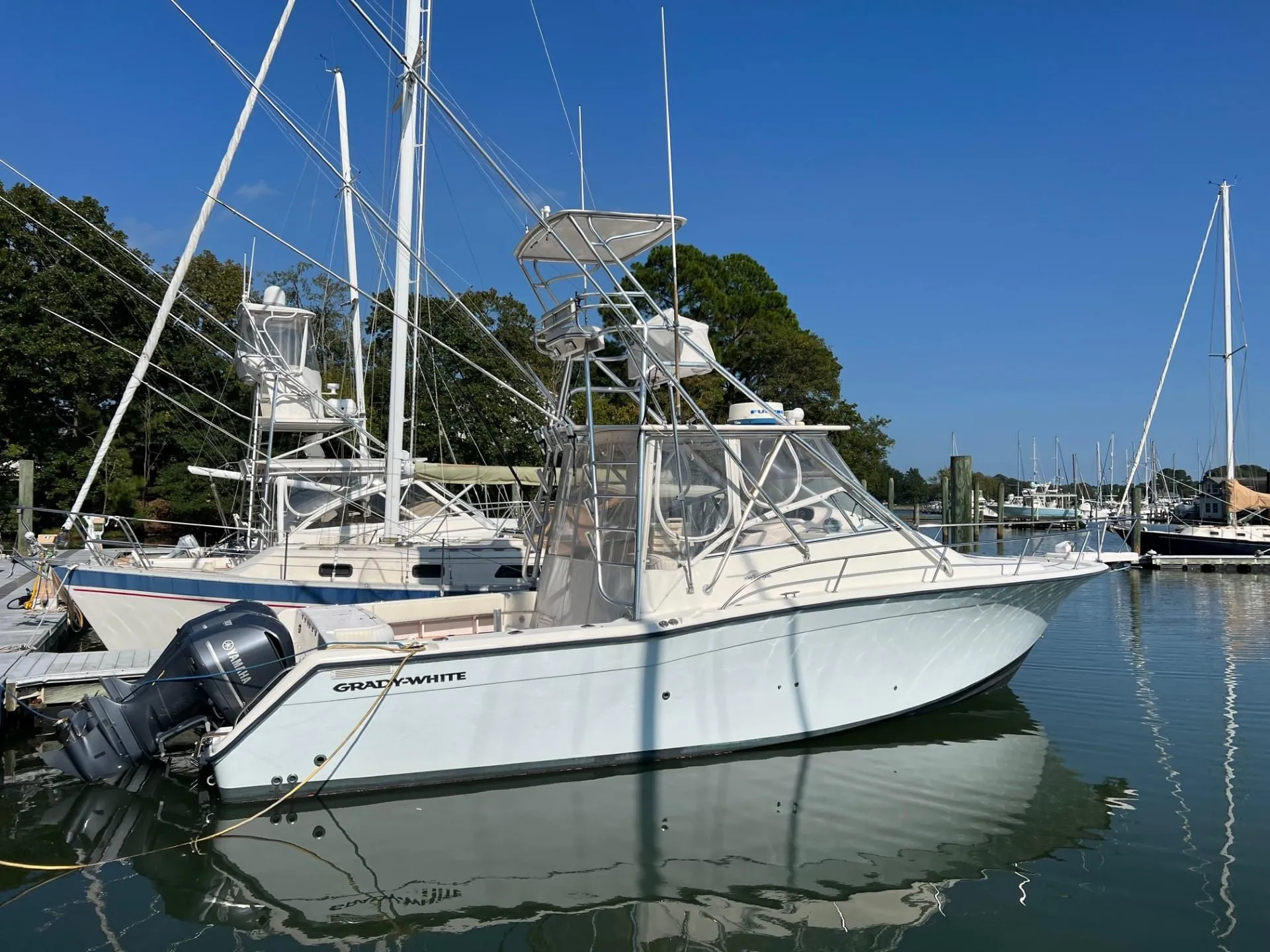 Grady White 330 Express "The Big O" is extremely well equipped to fish outfitted with a full tower, outriggers and a recent re-power in 2019 with Yamaha F300's still under warranty! Upper station controls on the tower make a great setup for Cobia fishing or heading offshore for Tuna. The large cockpit features spacious fish-boxes, live well, custom leaning post and plenty of space to move on board. Below decks provide comfortable overnight accommodations for extended trips or weekend cruises. All maintenance is up to date, call today to arrange a private showing!