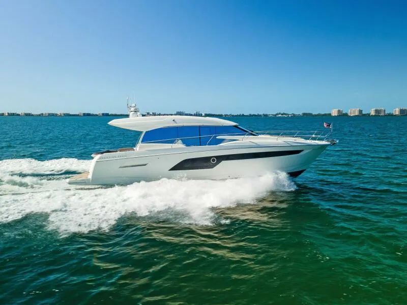 2018 Prestige 520S "The Islanders" for sale. “The Islanders” is a prime example of what a 50-foot yacht should be. This 2018 Prestige 520S is beautifully appointed with three staterooms and two heads, a large salon, and a practical aft-galley arrangement. A private entry to the full-beam amidship master sets her apart from other yachts in this class, and a luxurious bow lounge and an expansive cockpit with a custom-added grill perfectly complement her living spaces. She is captain maintained and recently had her annual engine and generator services completed. She is equipped with the optional tender garage and a 2021 Williams Jet Tender is included in the sale.