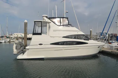 For and Aft Double cabins with separate heads and showers. Twin Crusader 330 HP Gas engines with 870 hours. Bow Thruster. Kohler 7.3 KW Generator. 2 Burner Cooktop and Microwave. West Marine 310 RIB Dinghy and outboard Flybridge Canvas and enclosure and winter cover . This boat is Very Clean, & Well Maintained with Engine Maintenance records, and Newer Electronics !