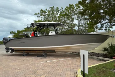 Powered with triple Yamaha 300 HP with 240 original hours and Y.E.S factory warranty through February of 2027! EPS Steering, twin Garmin touch screens with GPS plotter, Auto Pilot and sounder, Fusion sounder system with JL Audio speakers, Sea Decking, Swim ladder, Underwater lights, Cockpit and forward flood lights, Outriggers, Lewmar Auto anchor windlass, Aft fold down seating, Forward lounge seating with backrests, Console lounge seat, Enclosed head with an electric toilet, vanity and shower, Fresh and raw water wash down and transom shower!