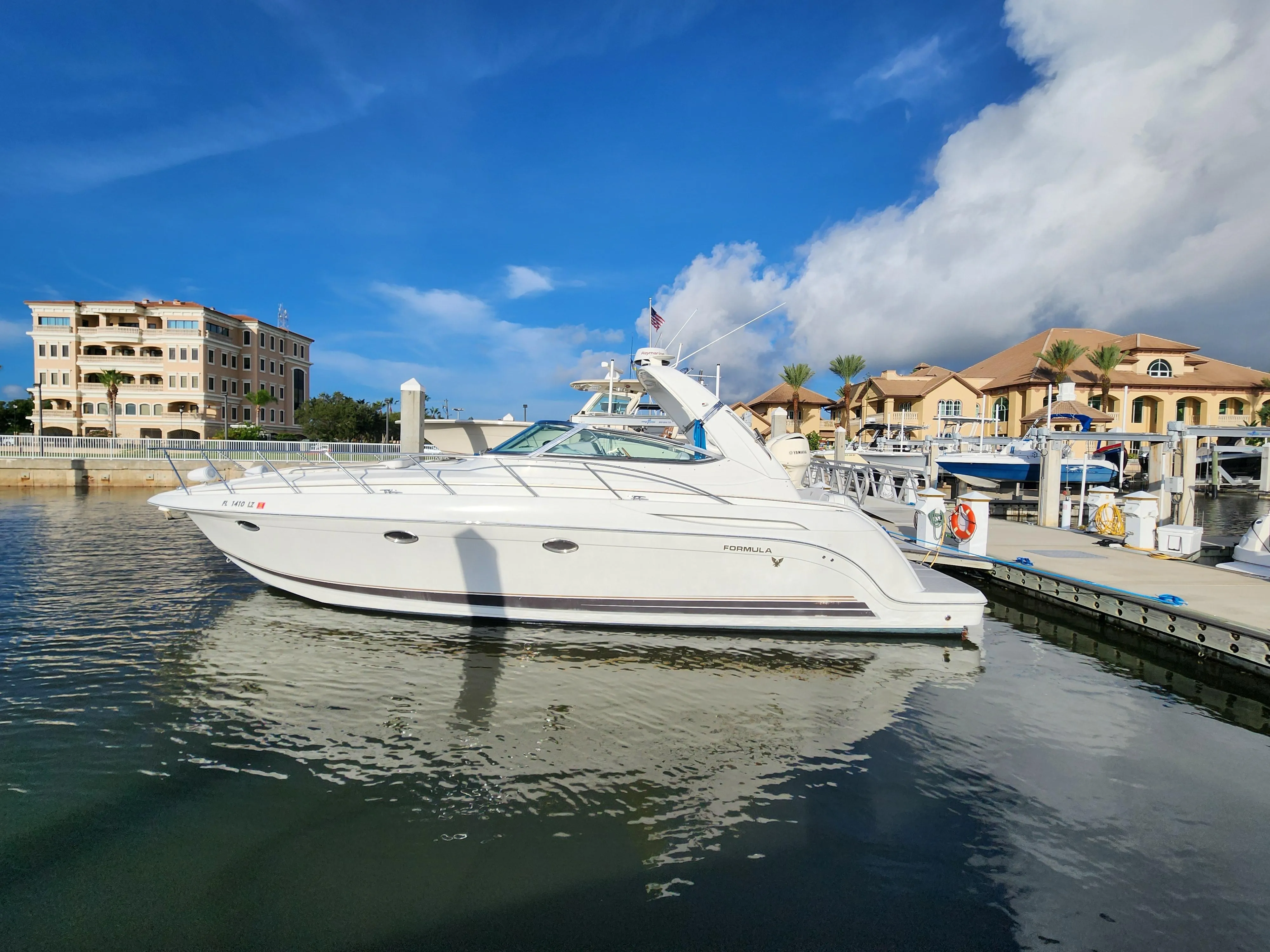 This classic Formula vessel shows very well. The engine compartment has been rebuilt due to water intrusion, water did not enter cabin area. Rebuilt engines (performed in 2023, including new accessories), all new wiring, pumps, batteries, battery charger, too much to fully list. Fully cleaned and detailed engine compartment. Updated electronics with new Raymarine Axiom MFDs and Standard Horizon VHF. Newer Dometic air conditioning system, installed 12/2022. Bridgedeck and cockpit seating is in very good condition, Aqua Traction on bridgedeck, cockpit, and swim platform. Cabin area is extremely clean and comfortable. She has had extensive, regular maintenance since the current owners took possession, with all documentation.