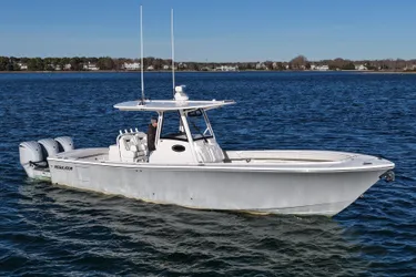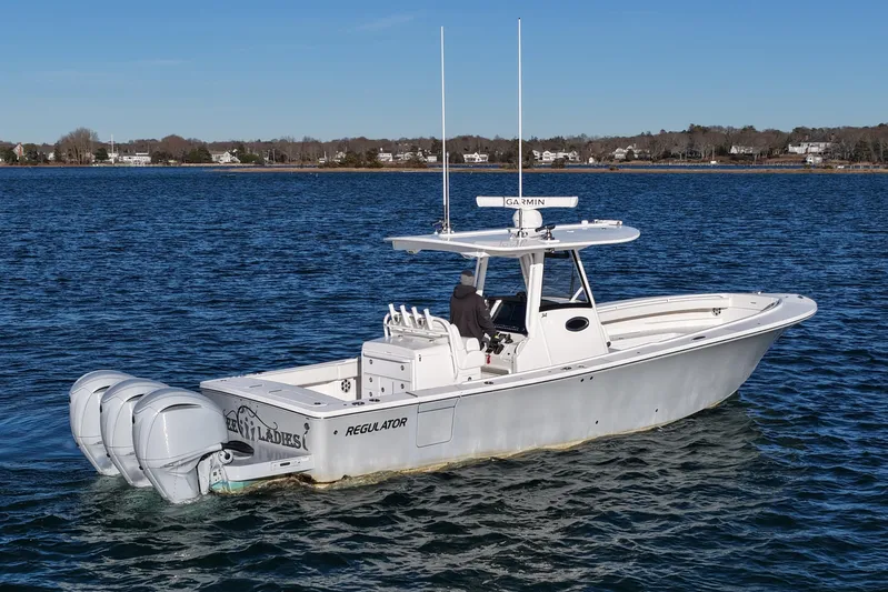 This Regulator 34 has been Lightly Used and Meticulously Maintained. Kingston Gray Hull Color with Matching Kingston Gray Yamahas F300s with only 195 Hours and Matching Engine Bracket, Helm Master Joystick controls and Auto Pilot.