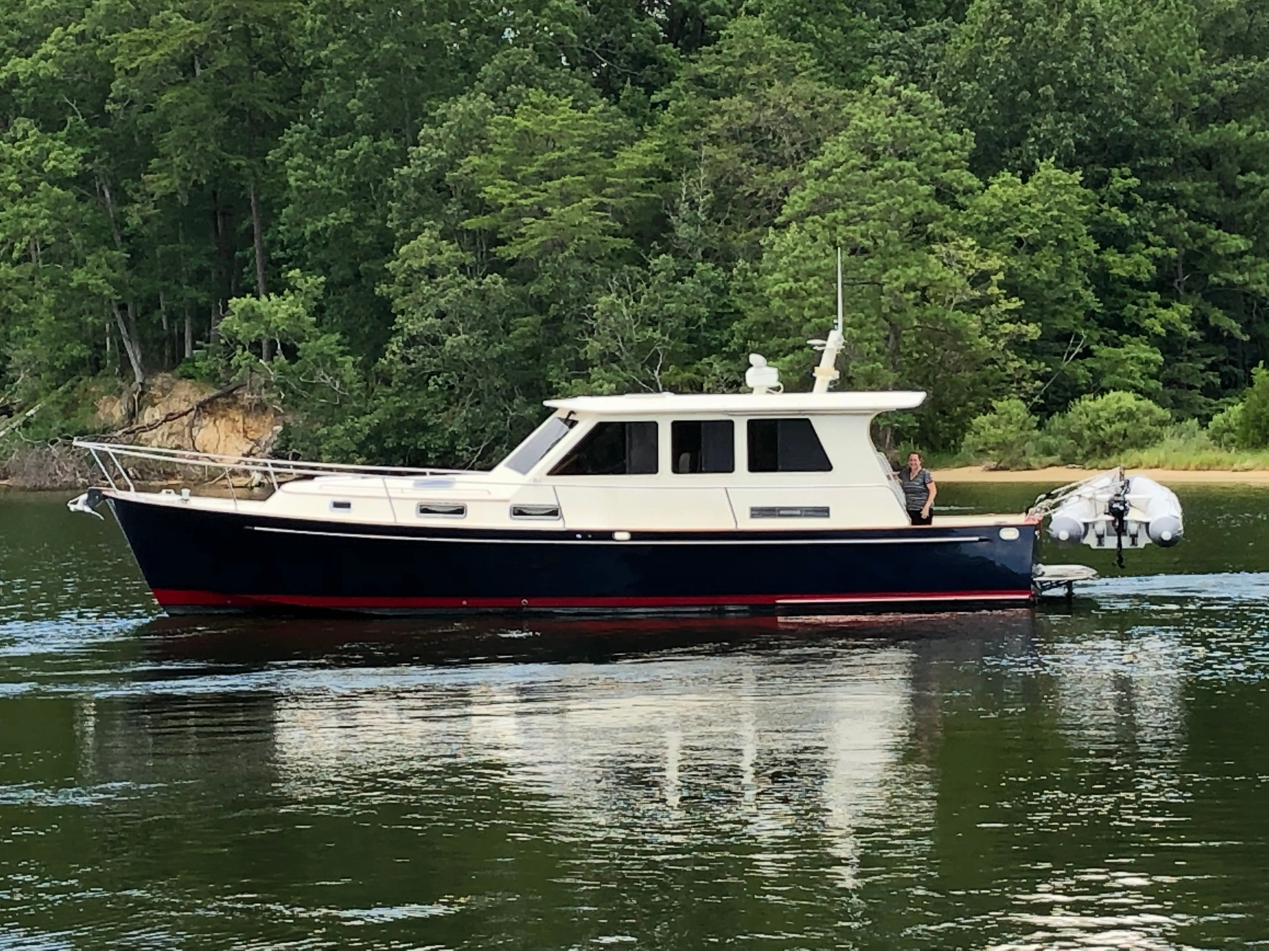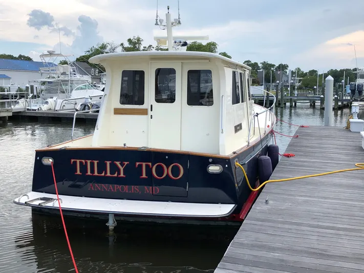 Legacy Yachts was established in 1995 and can trace their origins to the well respected Freedom Yacht Company. Built in Rhode Island, the Legacy 42 Sedan is highly regarded for her quality of construction and classic Downeast design. Downeast style cruisers, such as the Legacy 42, have become extremely popular due to their classic styling, performance and fuel efficiency. "Tilly Too" is in excellent condition with many recent upgrades (including recently added GARMIN electronics package) , and she will not disappoint. Powered by a single Cummins QSM11 660 HP diesel (@2171 lifetime hours), the "Tilly Too" is extremely fuel efficient and also has the ability to cruise at 18 knots with a top-end of 24 knots. With her bow and stern thrusters and side door at the helm, "Tilly Too" is quite easy for a couple to handle at the dock. Her propeller is skeg-protected, and she is equipped with a very nice electronics package. This boat is a real head-turner at every yacht club that she visits!