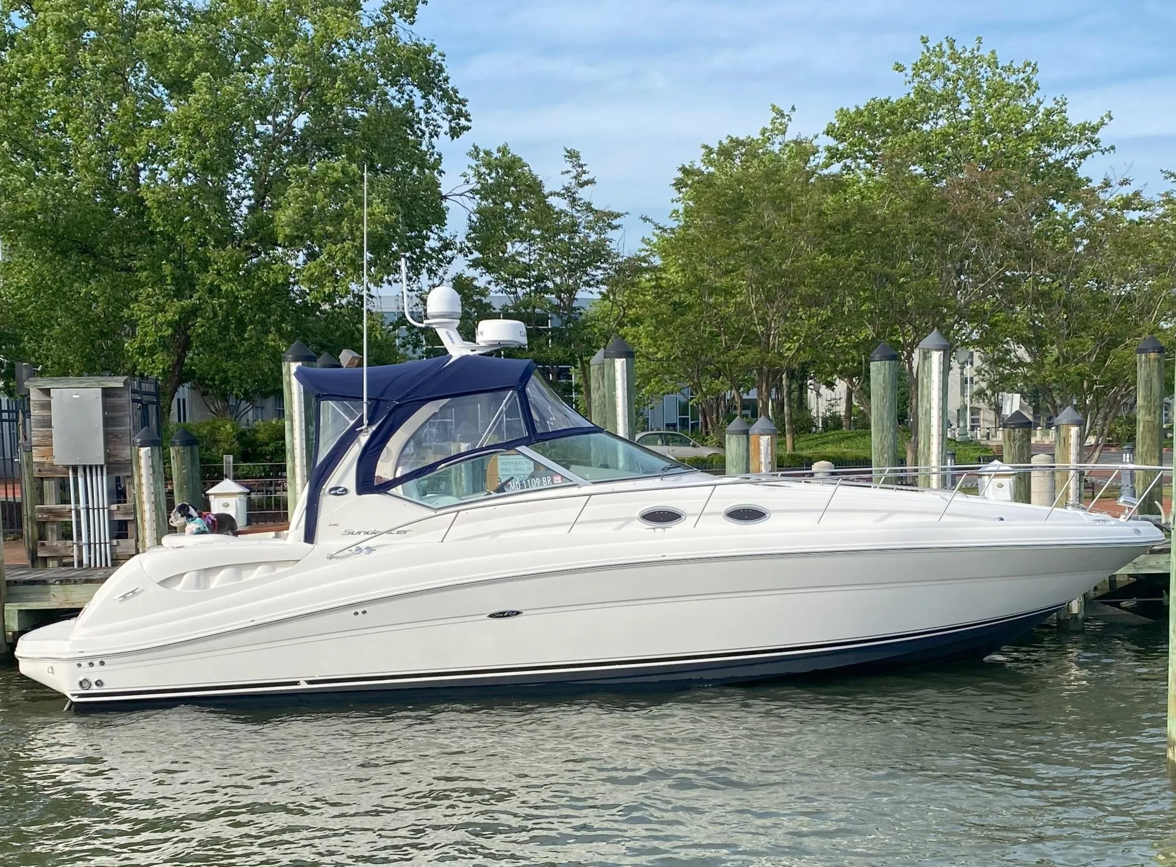 "TinkSher" is an absolutely premium example of one of the most popular boats ever made, the Sea Ray 340 Sundancer! With low hours on her Mercruiser 8.1S Horizon inboards and excellent ownership history (only two owners!) she is the Sea Ray to buy. "TinkSher" was freshwater kept until 2020 before being moved to the upper Chesapeake Bay by her current owners. The owners took the time to update and upgrade many of the systems on the boat including all new electronics, new audio visuals, new manifolds and risers, canvas, underwater lights, etc. A full list of upgrades and options are listed below. The boat has seen continual professional maintenance and care and is a must see. Please contact us to set up a time to see this boat in person!