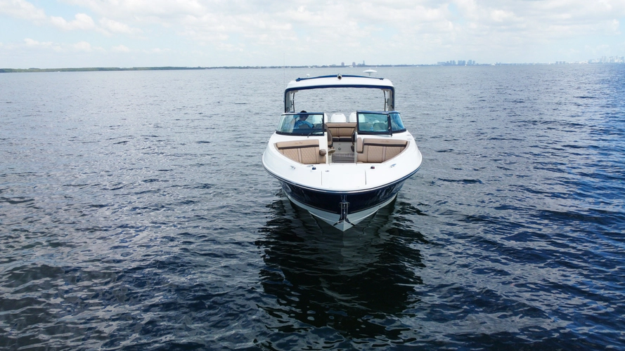 Powered by triple Mercury Verado outboards (approx. 300 hours as of March 2026), the SLX 350 OB offers impressive performance, smooth handling, and joystick docking for effortless maneuverability. 300 Hour service completed in November 2025 with newer batteries.