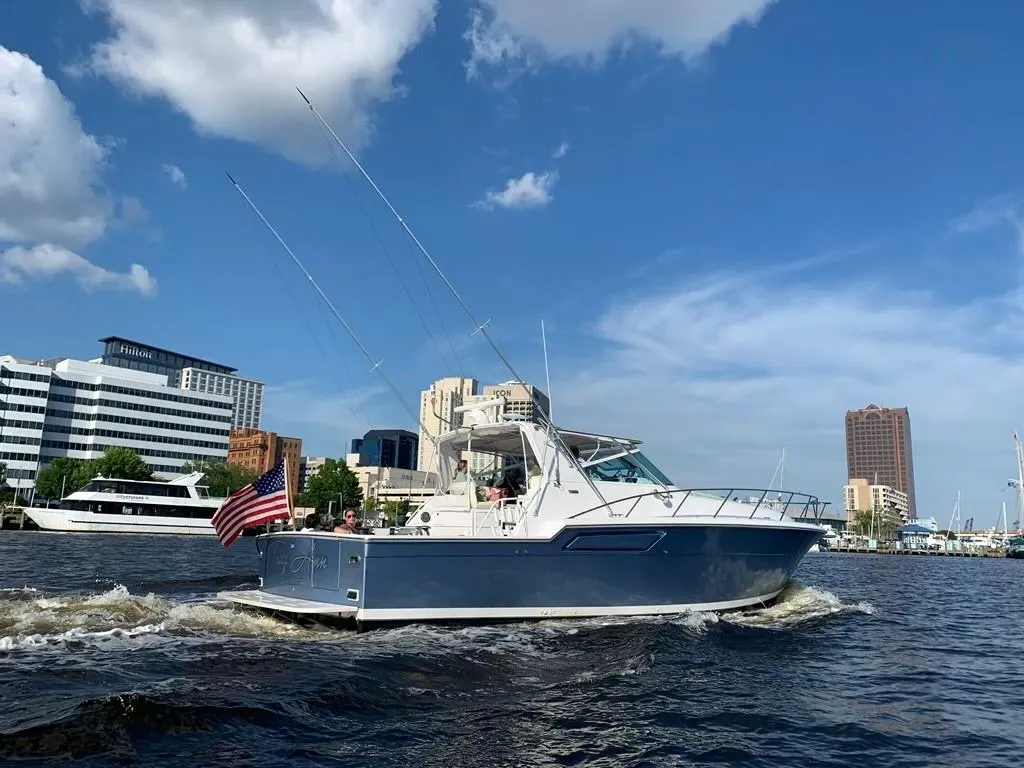 Recent 12 inch Garmin touch screen electronics, 16k BTU Helm HVAC, new 16k BTU Webasto HVAC unit for the Salon and Master, new Water Heater, New 8D batteries, New custom SeaDeck cockpit and helm deck flooring. Fighting Chair, Outriggers, Rod storage, huge Transom livewell, in deck fishbox, Electric reel plugs beneath the gunwhales, Teak and Holly cabin floor, New Large screen HDTV, new Fusion cockpit stereo, new anchor windlass. Powered by twin 6v92 Detroits, Port engine was rebuilt in 2005 (currently with 950 hours SMOH), Starboard engine was rebuilt Fall 2019 (currently with 125 hours SMOH). 21 kt cruise, 28 kts WOT.