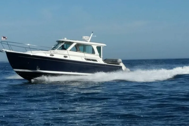 I’m proud to present Tranquility, a beautifully maintained Back Cove 33 finished in striking Flag Blue and powered by a dependable 480HP Cummins QSB diesel engine. Known for her single-diesel efficiency, timeless Downeast styling, and exceptional build quality, this vessel offers a smart and versatile layout ideal for both cruising and entertaining.
