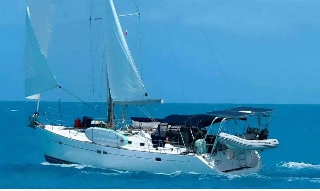 This Beneteau 473 boasts a very spacious interior, with plenty of room for entertainment. Her cockpit, with its twin helm stations, is equally spacious. This boat was built for enjoyment! Cruised for the last few years by a family, she has just returned from a season in the Bahamas and is ready to go again. With her bow thruster and in-mast furling and electric winch, she is easy to handle.