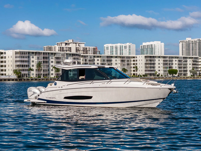 Experience luxury and performance with TREEHOUSE, a stunning 2021 Regal 36 XO yacht that is perfect for family outings and entertaining friends. This meticulously designed vessel features a spacious outdoor seating area and an innovative cockpit that seamlessly blends indoor and outdoor spaces.