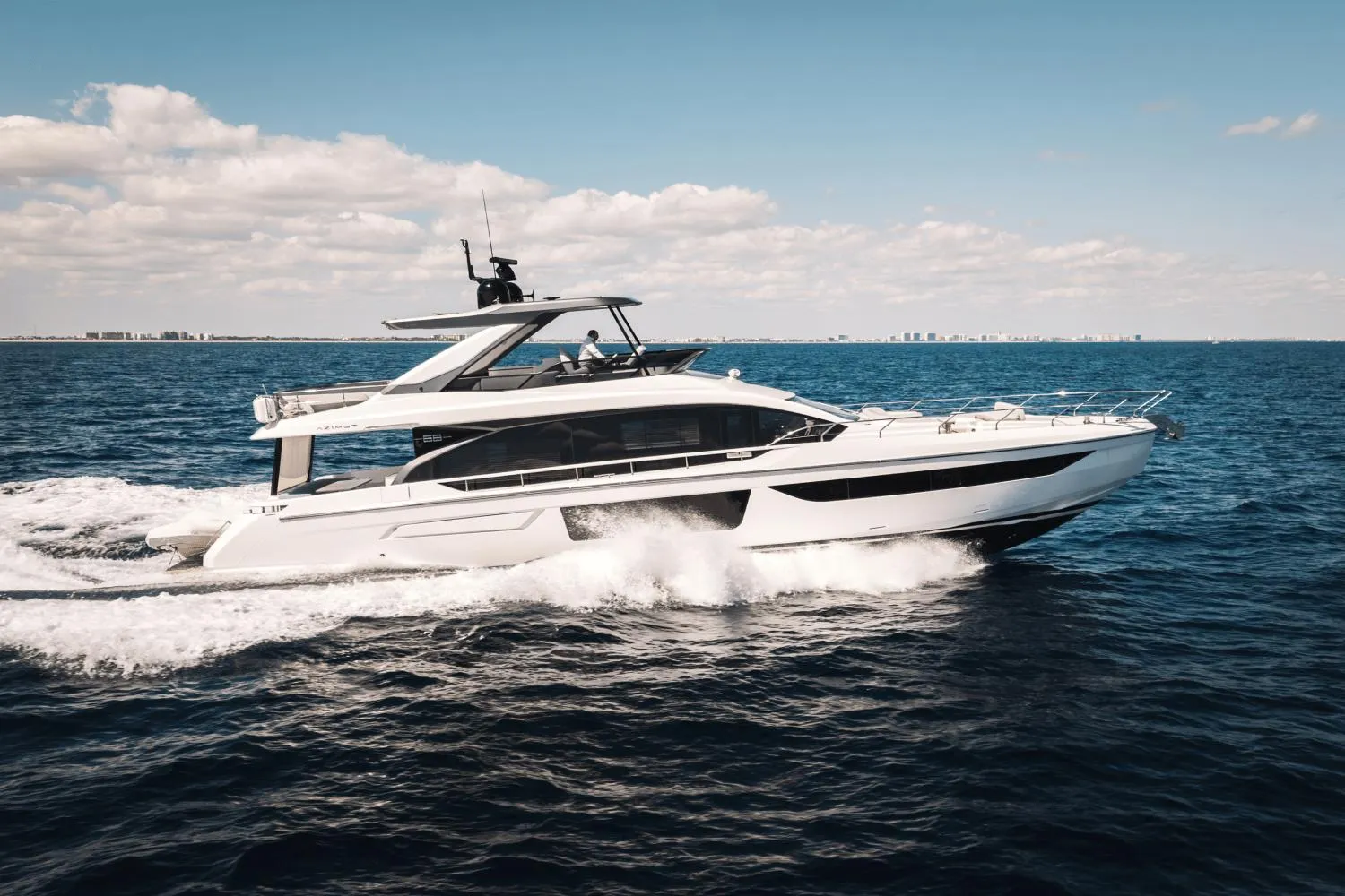 Introducing the epitome of luxury and customization, the 2022/2023 Azimut 68 Fly. "T3" JUST ADDED Volvo factory extended engine warranty and the balance of the 5 YRS IS TRANSFERABLE to the New Owners ($30k Value). Owners added over $300 in CUSTOM UPGRADES from the factory and here in Florida. This meticulously crafted vessel was custom tailored to perfection for client, boasting an array of bespoke features that elevate the yachting experience to unparalleled heights. Customized with precision, it comes equipped with exclusive enhancements including a Clear Line system, Upgraded FLIR Night, STARLINK system for WIFI and upgraded SpotZero water maker filtration system, ensuring pristine water quality for ultimate comfort during extended journeys. The inclusion of a TV in the dinette area enhances onboard entertainment, while a dedicated lift provides effortless access to different levels. Powered by a Volvo IPS engine, this yacht guarantees exceptional performance with a mere 175 hours of usage, promising reliability and efficiency for years to come. With its galley positioned forward, the Azimut 68 Fly optimizes space utilization and creates a seamless flow throughout the interior, setting the stage for unforgettable maritime adventures in opulent style.