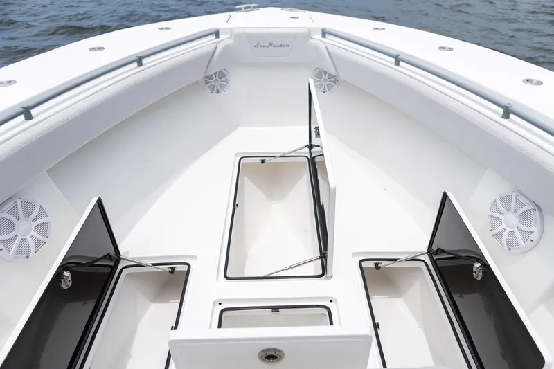 The 2024 SeaHunter 33 Tournament is a dry ride center console that offers all the features of larger tournament boats. This vessel combines fully insulated fish boxes, three standard live wells, and SeaHunter’s unparalleled seaworthiness into a compact, efficient design. Powered by triple Yamaha 300s with only 80 hours, this boat is ready for both cruising and serious fishing adventures. The SeaHunter 33 Tournament includes a range of premium features, ensuring it is equipped for any adventure on the water.