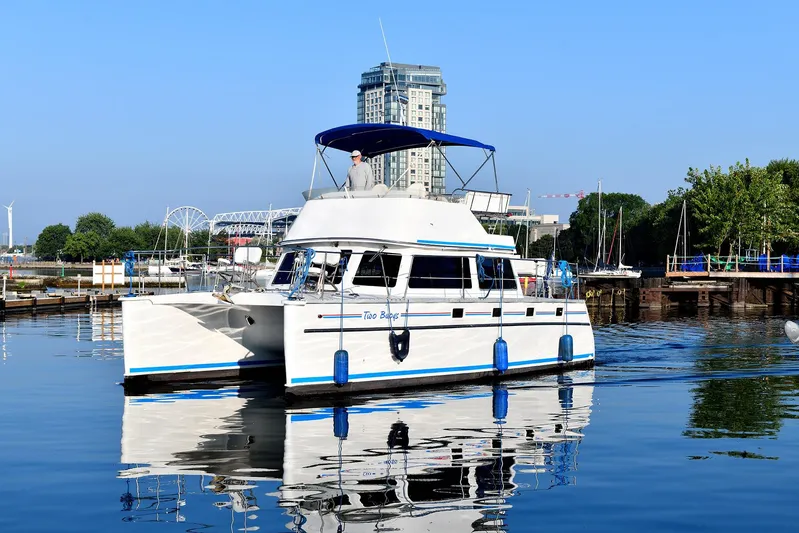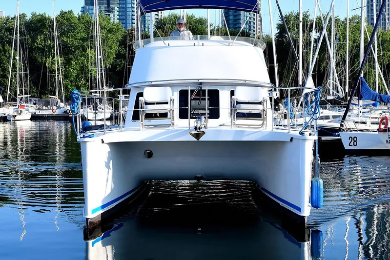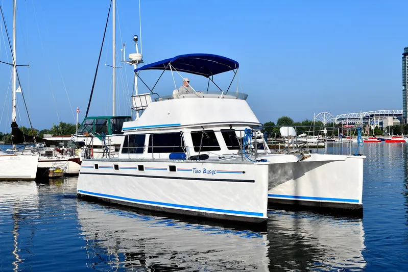 The remarkable 2002 PDQ 32 Power Catamaran, a stunning motor yacht that combines performance and comfort. With an overall length of 32 feet, this vessel boasts a sleek fiberglass hull designed in a catamaran shape, ensuring stability and efficiency on the water. Powered by twin Yanmar 4JH3-TE diesel engines, each delivering 75 hp, it offers a cruising speed of 14 knots and a maximum hull speed of 17.5 knots, making it perfect for cruising adventures. The interior features two cozy cabins and a well-appointed head, providing ample space for relaxation. An electric windlass enhances convenience, making anchoring a breeze. This used yacht has been meticulously maintained, with only 1950 hours on the engines, ensuring reliability for your journeys. The PDQ 32 Power Catamaran, aptly named "Two Buoys," is ready to create unforgettable memories on the water.