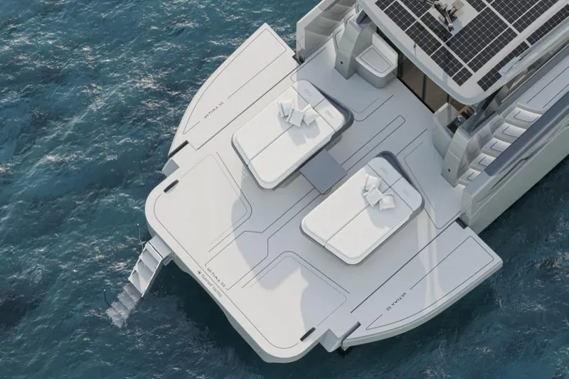 Ultralight, thin, and flexible solar panels are discreetly integrated into the structure, supporting onboard systems and reducing generator reliance. The result is a yacht that feels both progressive and practical — ideal for owners seeking a forward-thinking, low-consumption platform without compromising on comfort or style.