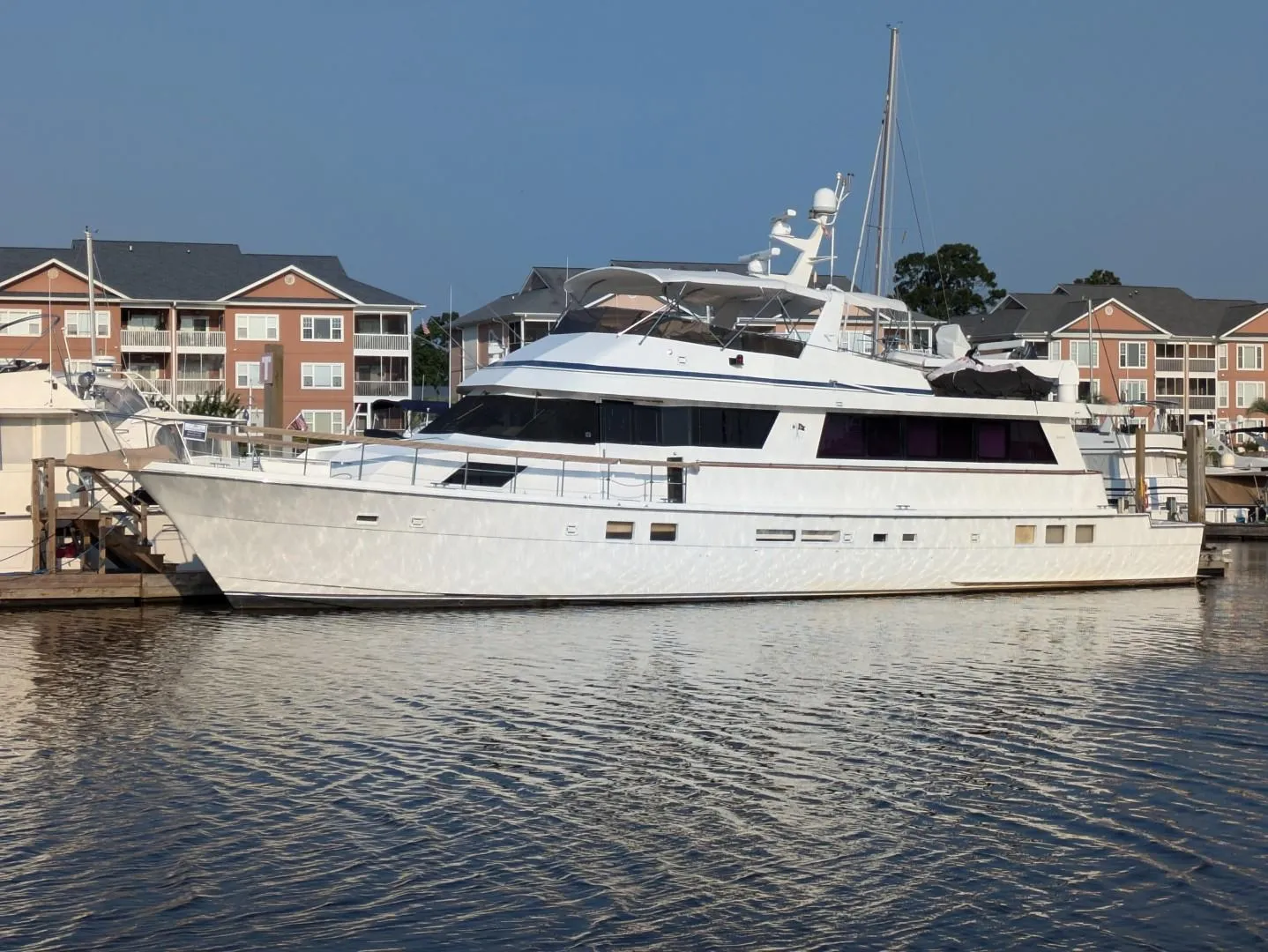 Unique Skill is a very unique vessel in herself. She started her life as a Hatteras 70 Motor Yacht and had a Cockpit Extension which to her to 80 feet as she sits today. Five Staterooms, Five Heads and Priced to sell, WOW.