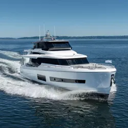 Copious large yacht features ingeniously fitted within a manageable owner/operator framework – this is the cornerstone of the Horizon V68 motoryacht model. Created in collaboration with world-renowned designer Jonathan Quinn Barnett, the V68 has been planned throughout with spacious accommodations, wide side decks, and a voluminous interior on a 19’6” beam that takes advantage of large windows in the main deck and cabins. The V68’s plumb bow design – a striking feature from Stimson Yachts’ hull design – allows for a longer waterline and reduces drag at lower, displacement speeds; the larger hull beam also makes for greater stability when it counts most. Ideal for first or second-time buyers, families and owner/operators, the Horizon V68 luxury motoryacht provides the qualities of a superyacht – safety, solid architecture, and customization – all in under 70 feet.