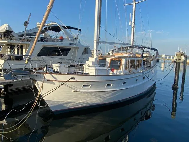"Valkyrie" is a fine example of the highly sought after Island Trader 46. The Island Trader 46 can take you anywhere in the world in comfort. She's a safe, heavy, ocean passage boat. If you're looking for just the right boat to handle the Carribean, Bahamas, sailing the coastline, or living aboard, this is the boat. The spacious topside, the absolute stunning Taiwanese teak interior, the massive aft stateroom, two heads with shower and tub space and a very large galley this boat will impress you the moment you step aboard.