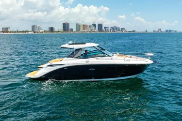 The Sea Ray 320 Sundancer is a luxurious, sporty cruiser featuring a spacious cockpit, comfortable cabin with sleeping accommodations, a fully equipped galley, and modern electronics. The MerCruiser 350HP UPGRADED engine package and sleek design offer exceptional performance and style for day trips or overnight stays on the water.