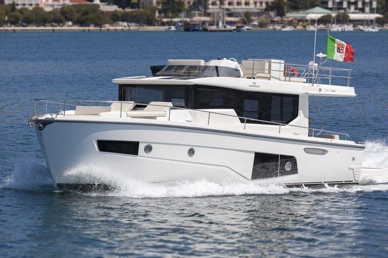 Cranchi Eco Trawler 43, year 2021, yard number 7751, equipped with engine Volvo 2x IPS 500 EVC/E (2 x380 hp), propulsion system + joystick + trip computer + single lever + cruise control, standard equipment according the catalogue specification, categorized as B category boat of Cranchi shipyard, standard equipment listed bellow: