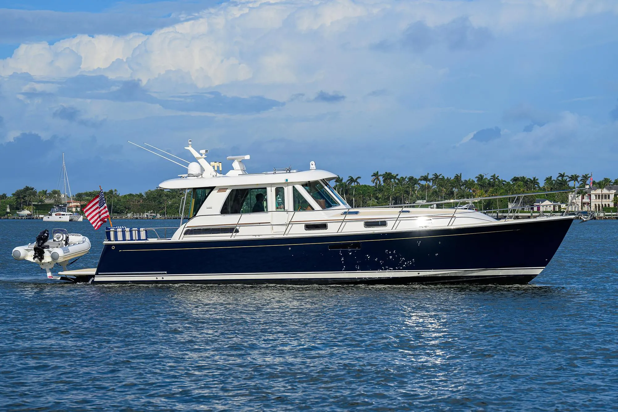 Vienna, a 2018 Sabre 48 Salon Express has been thoughtfully maintained and cruised from Cape Cod to Southwest FL for the past few years.  Recently, she has been updated with an awl grip flag blue paint job and detailed before headed south for her berth in West Palm Beach Florida. While in southwest Florida, she is mostly used as an office and cocktail cruiser.  Vienna represents an important benchmark for the Sabre 48, as she is equipped with Volvo IPS 700's, glass cockpit display and DPS enabled joystick, all things that are still being produced in todays Sabre 48's as they come out of the factory in Raymond, ME.  Other options are listed below.